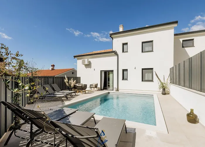 The villa features a fully-fitted kitchen, as well as a dining area for guests's convenience. Taverna Borgonja, serving a wide range of meals, is a 6-minute walk away. This Visnjan accommodation is also located 44 minutes by car from Pula airport. Relax and enjoy a private swimming pool and a private garden.
